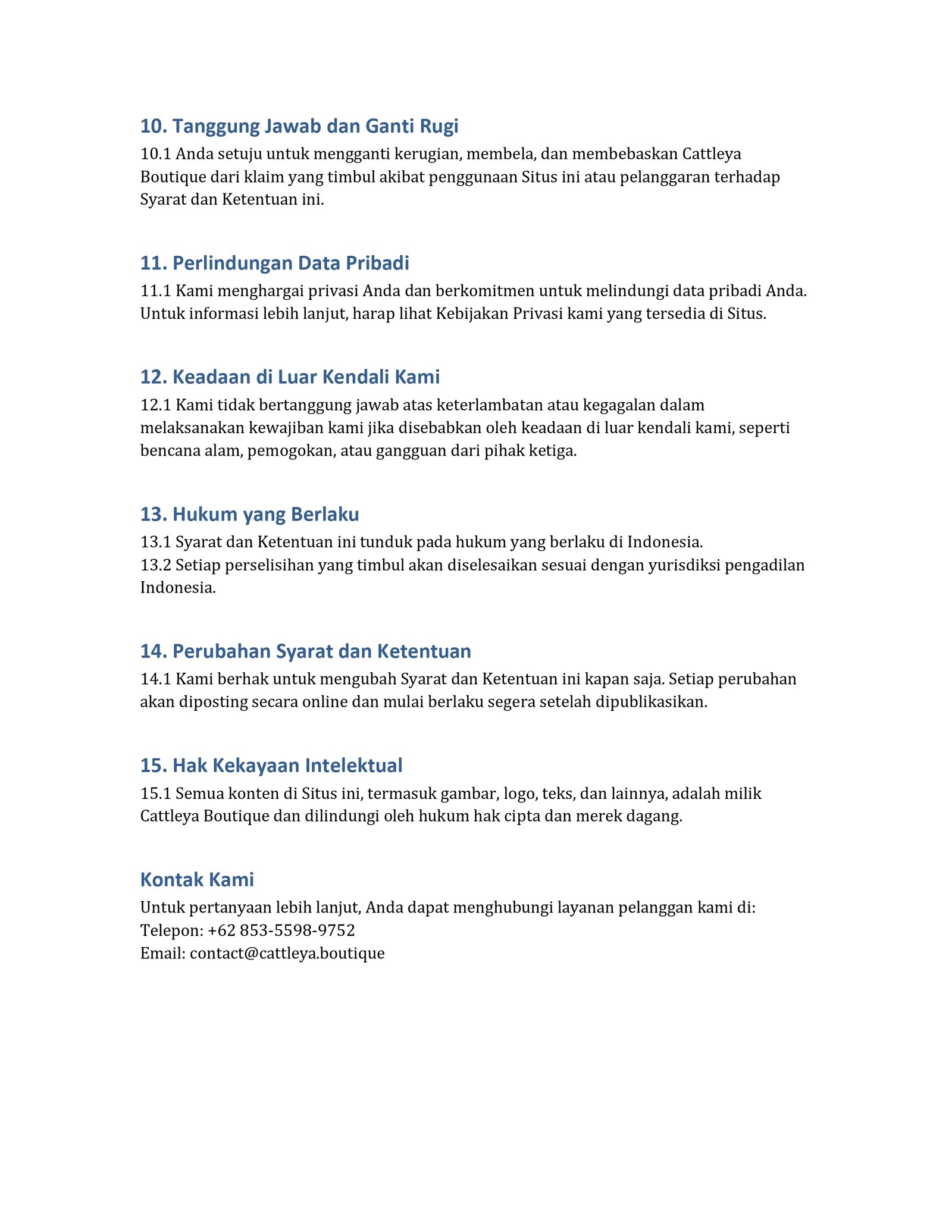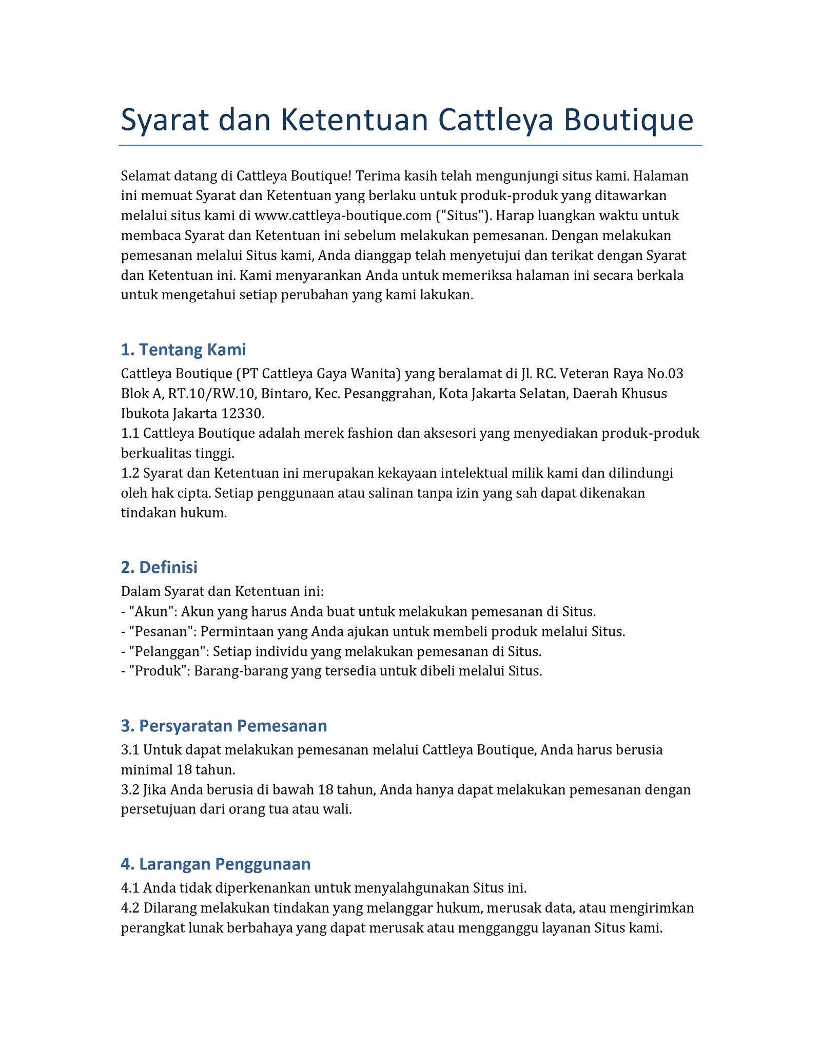 Mohon membaca syarat dan ketentuan berbelanja di E-Commerce Cattleya Boutique